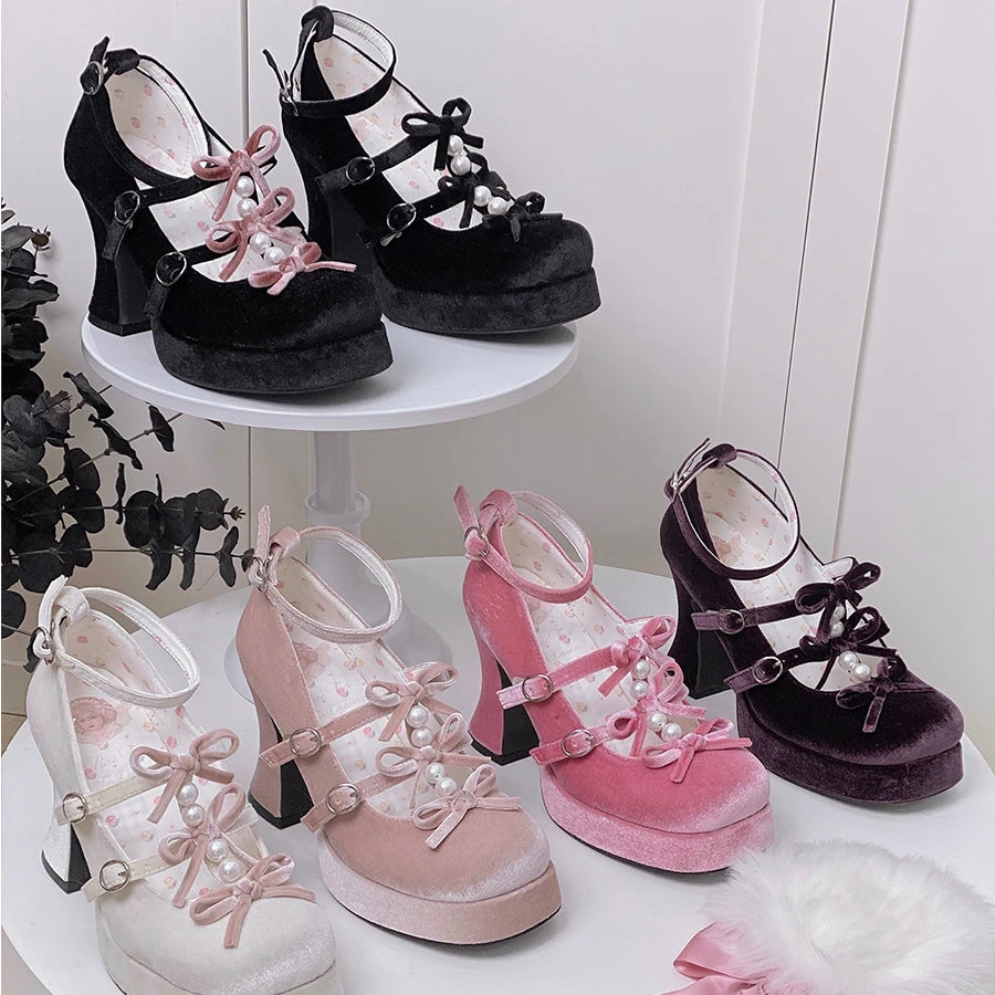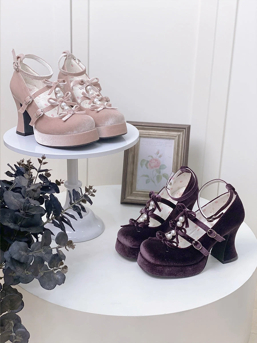 6 Colors Kawaii Velvet Elegant Bow Shoes ON611