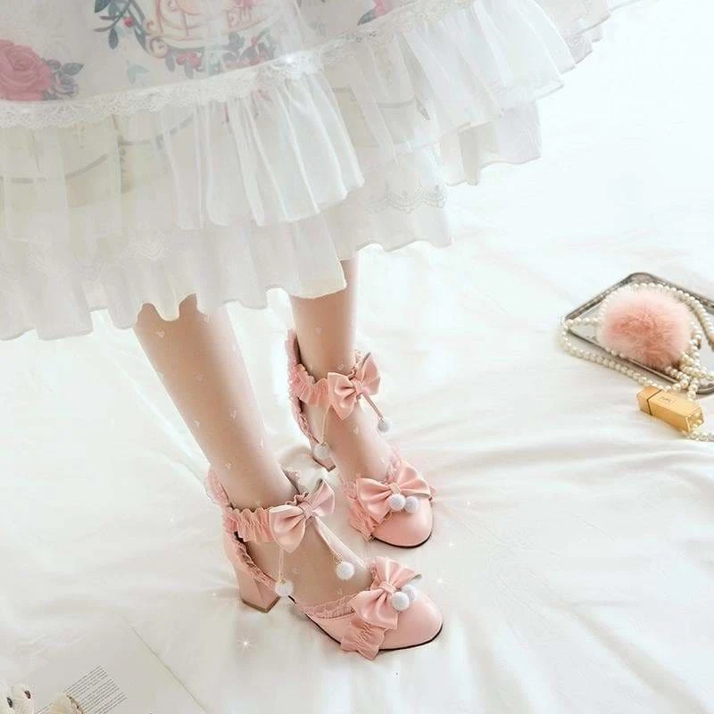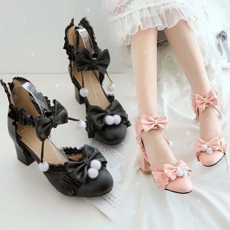 Black/Pink/White Fashion Kawaii Lolita High Heeled Cute Shoes SS1861