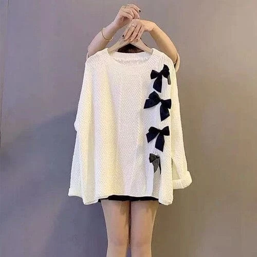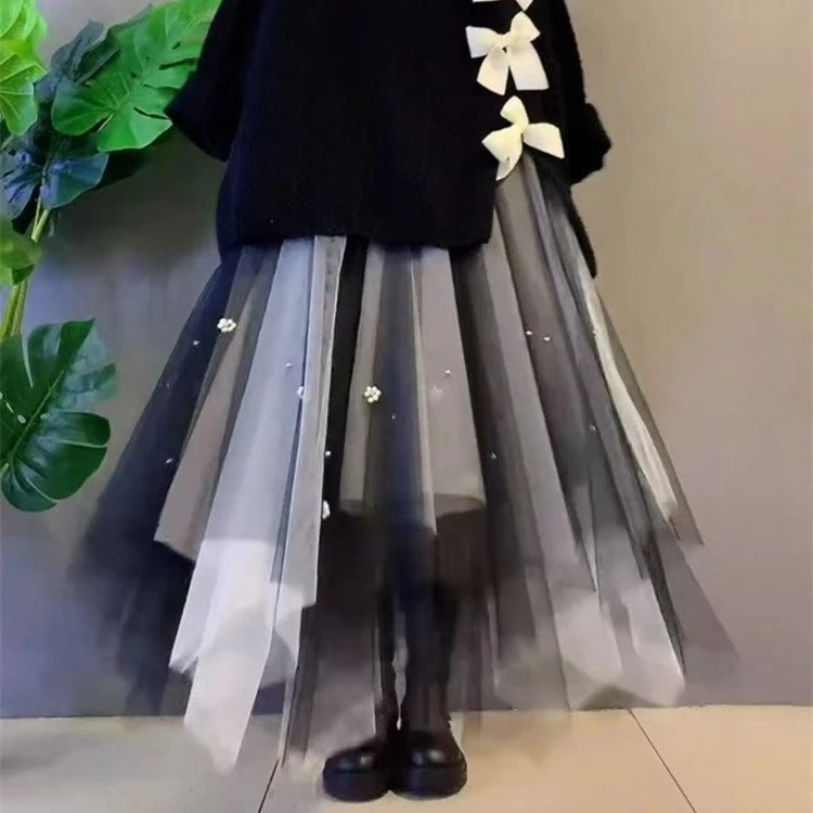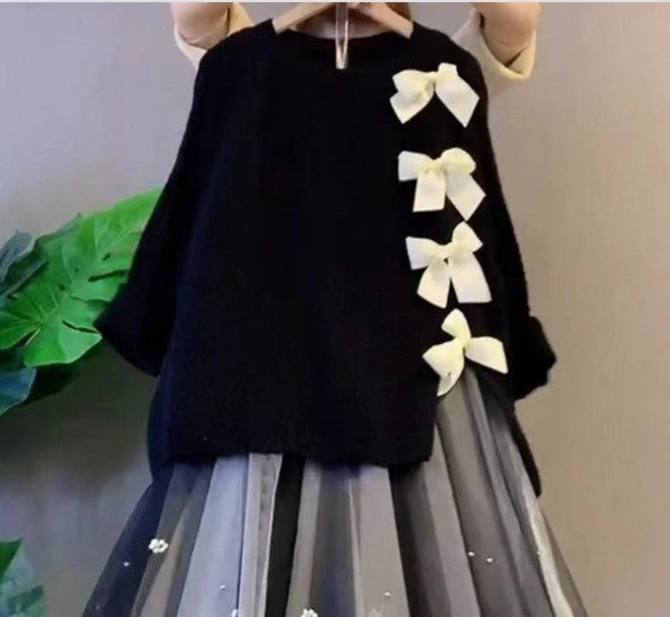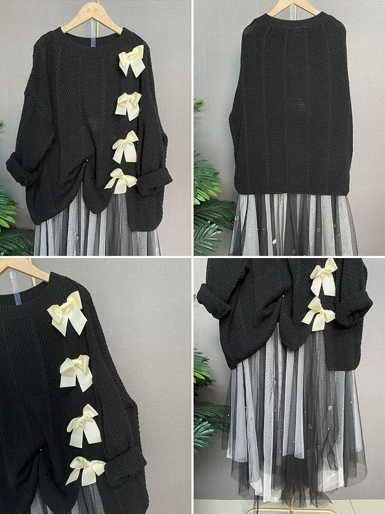 Bow Knot Decor Split Sweater Tulle Skirt Two Pieces Set ON241