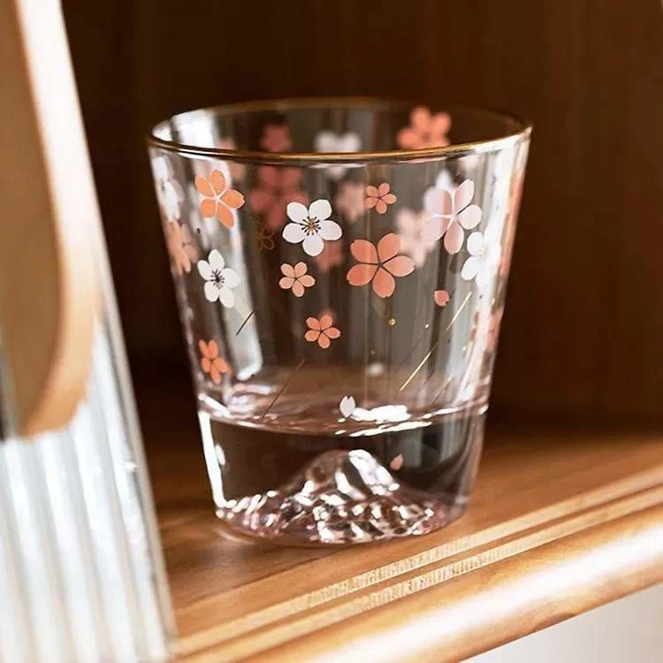 Cherry Blossom Season Mount Fuji Aesthetic Sakura Crystal Glass Mug SP16060