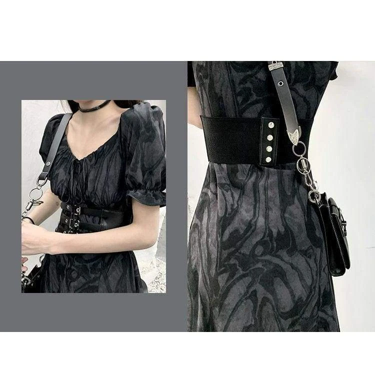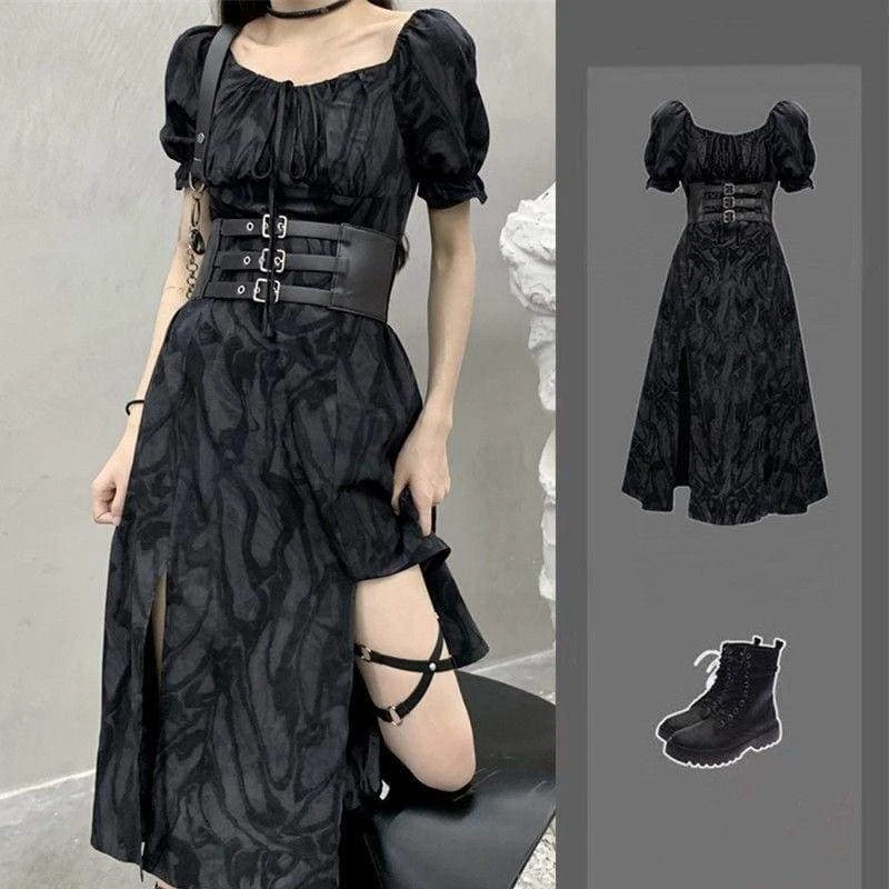 Cool Alternative Grunge Open Leg Long Black Gray Dress SS1609