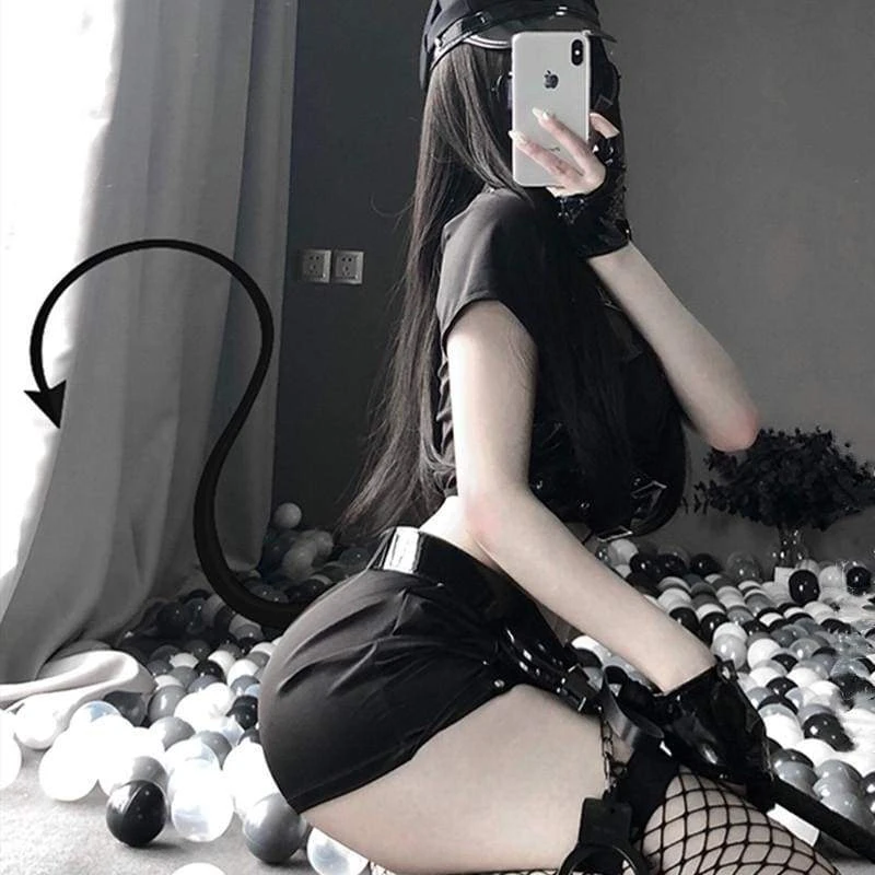 Including: top + skirt + hat + glasses + gloves + net stockings + belt