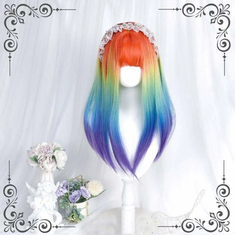 Cool Rainbow Style Long Straight Kawaii Wig SS1744