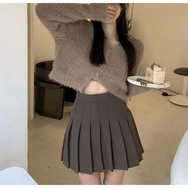 Cute Irregular Cardigan Sweater High Waist Pleated Skirt Set ON259
