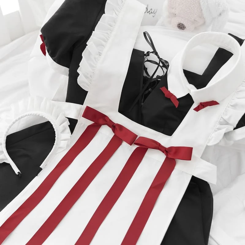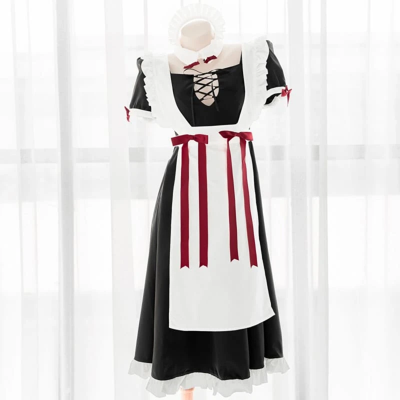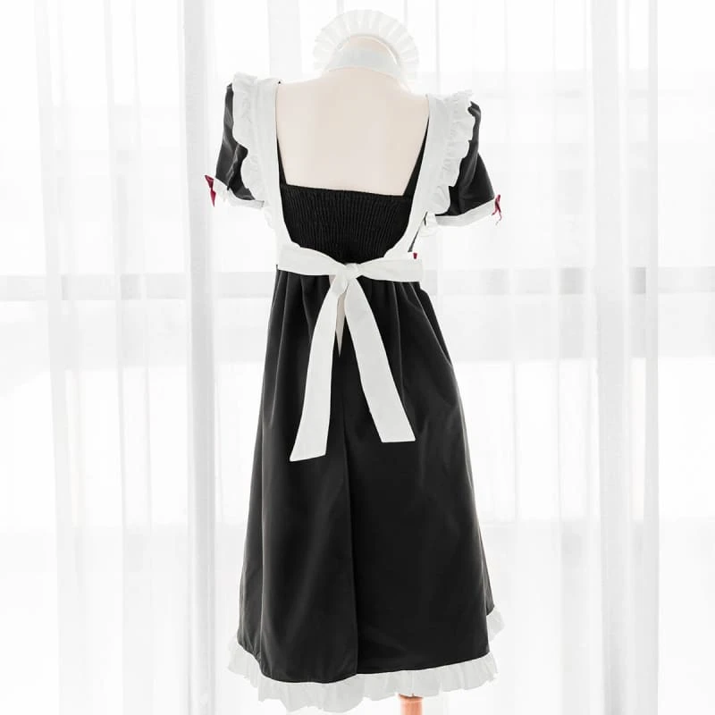 Cute Long Black Open Back Maid Dress EE0960