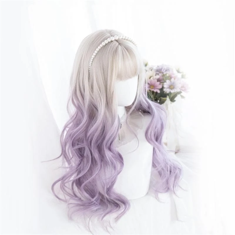 Cute Pastel Silver Light Purple Curly Princess Lolita Wig SP16063