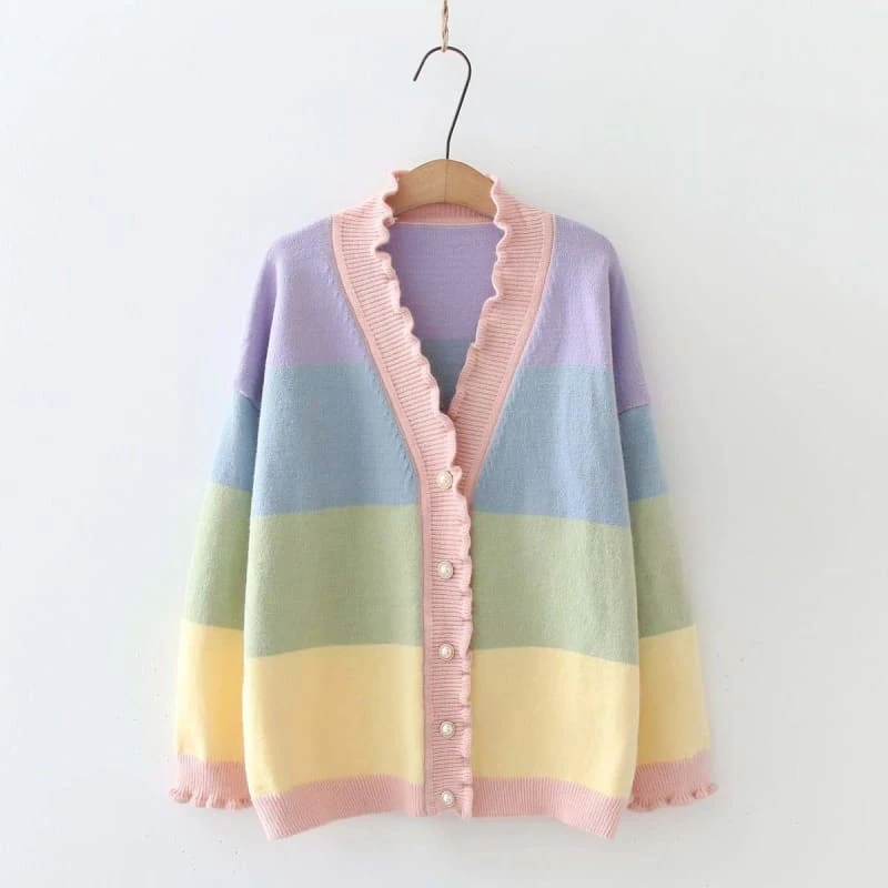 Cute Rainbow Striped Wave Cardigan Coat SP16088