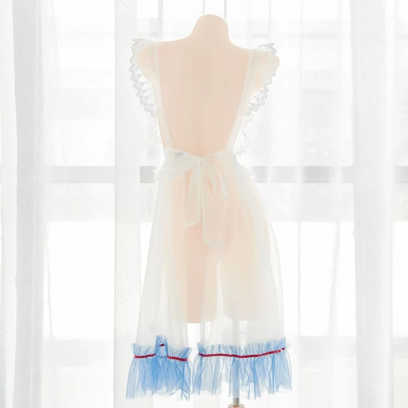 Cute See Through Dress Blue Details Red Ribbons SS2102