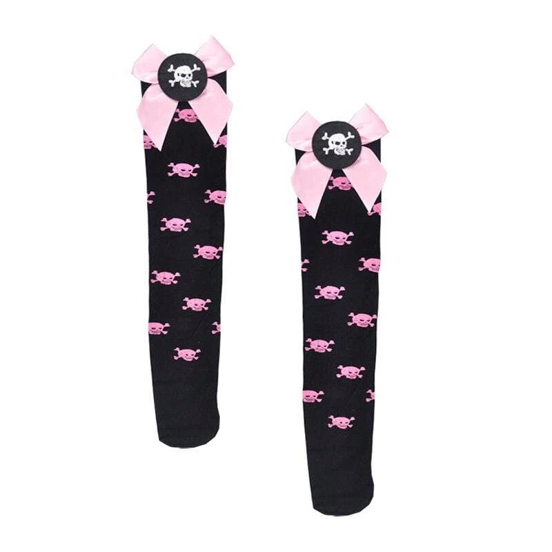 Fashion Cute Bow-Knot Knee Socks Ladies Sweet Gothic Casual Thigh Sexy Stretch Skull High Socks Lolita Printed Girls Stocking