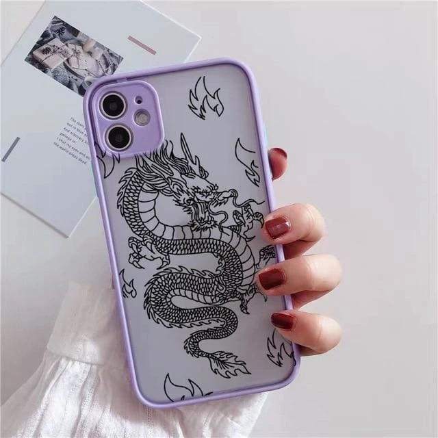 Type: Fashion Black Purple Dragon Phone Case Cover