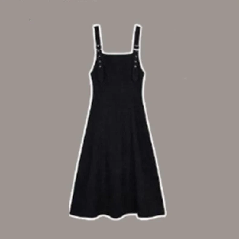 Fashion Gray Short Sweater Black Dress Two Piece Set SP16135