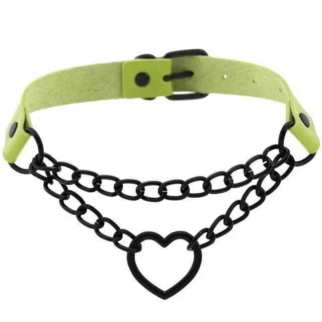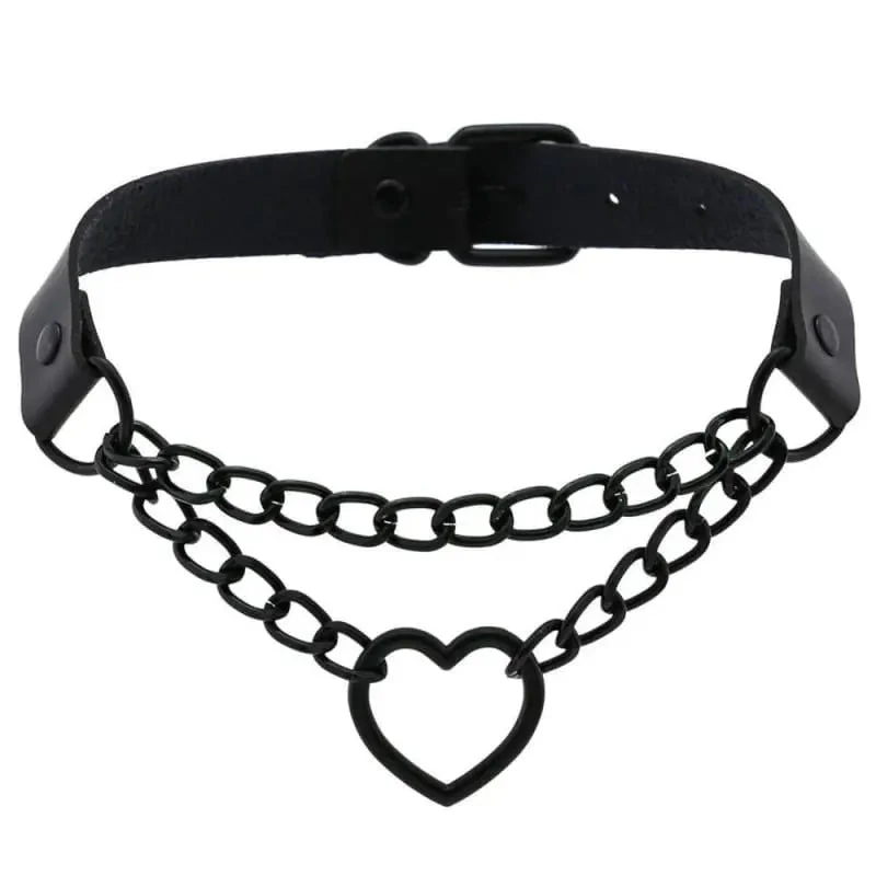 Gothic All Black Heart Chain Choker Necklace (Available in 16 colors) EG0026