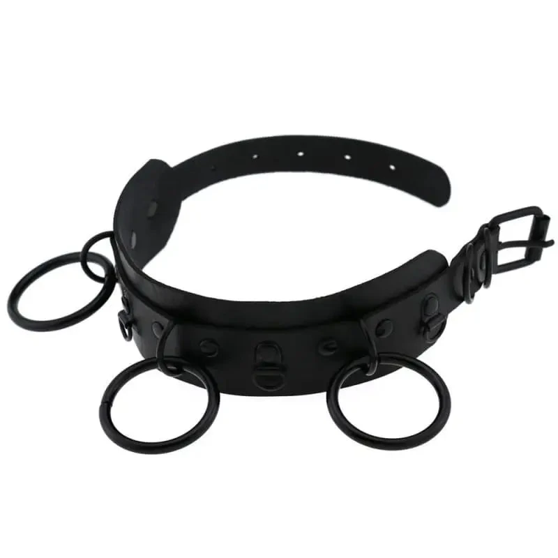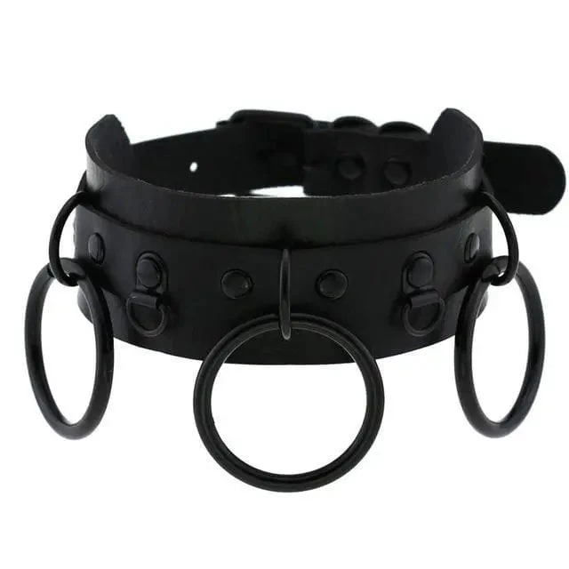 Gothic All Black Triple O-Ring Large Choker Necklace (Available In 16 Colors) EG0032