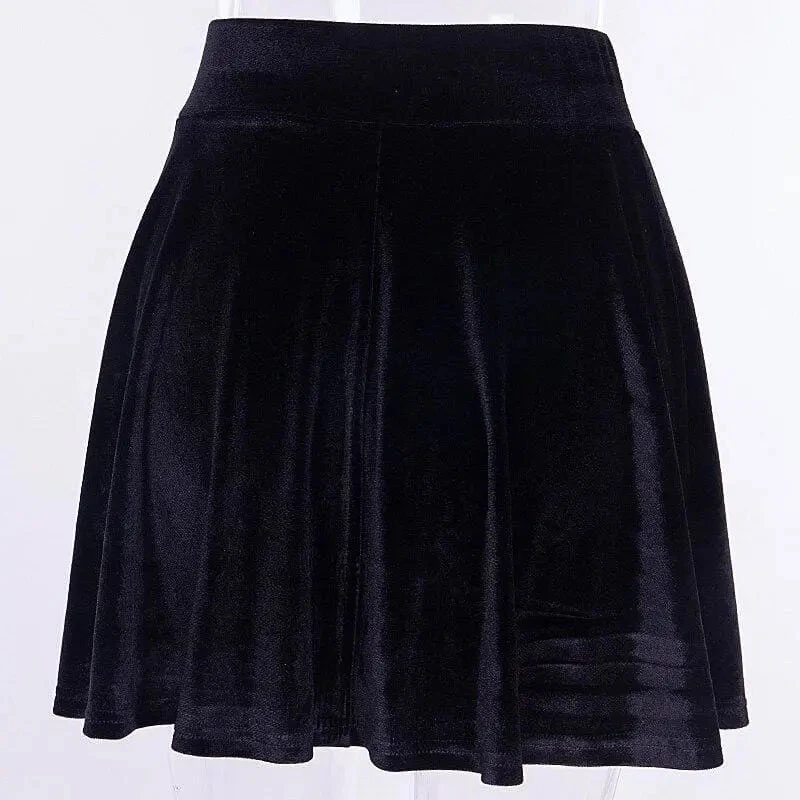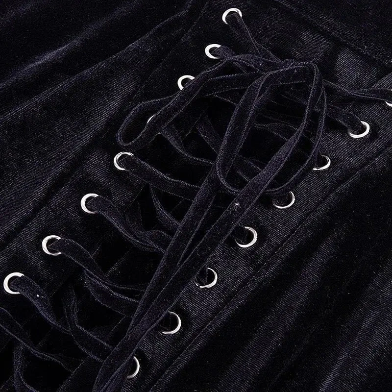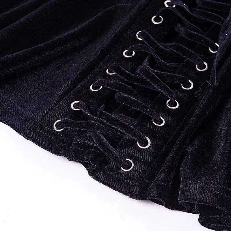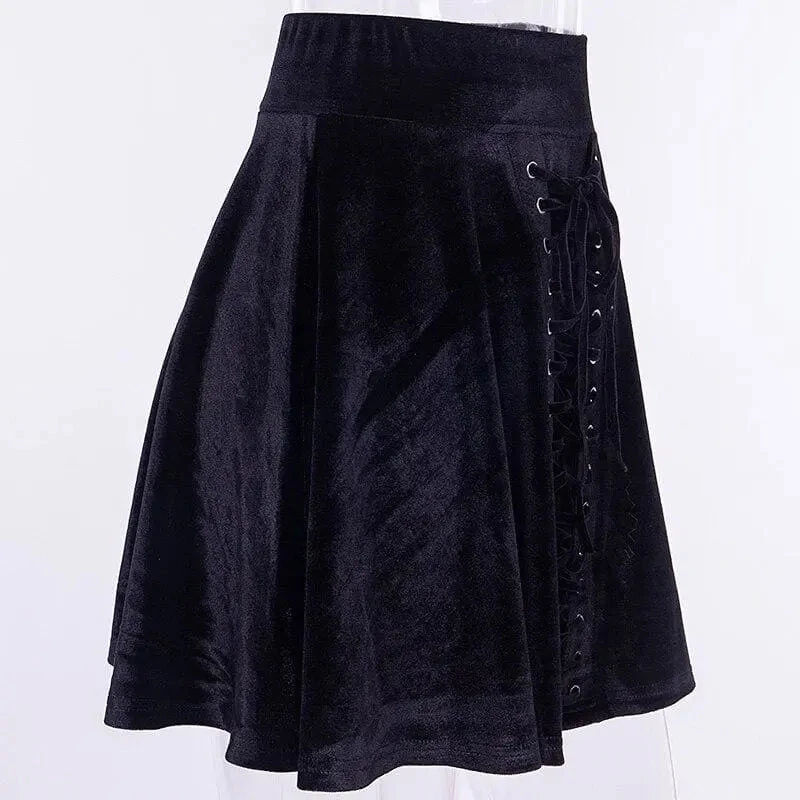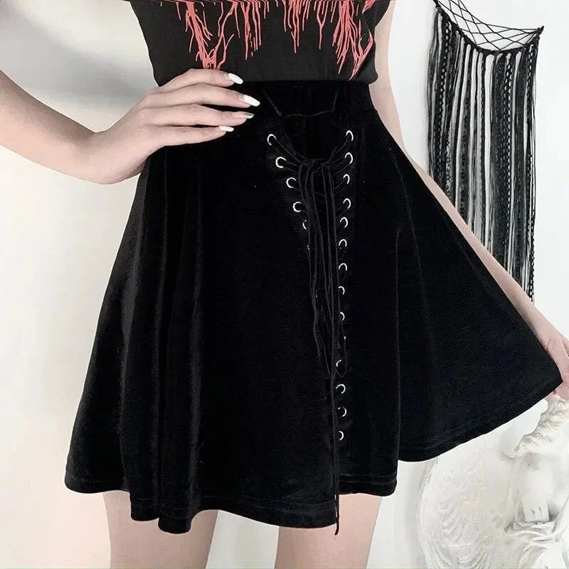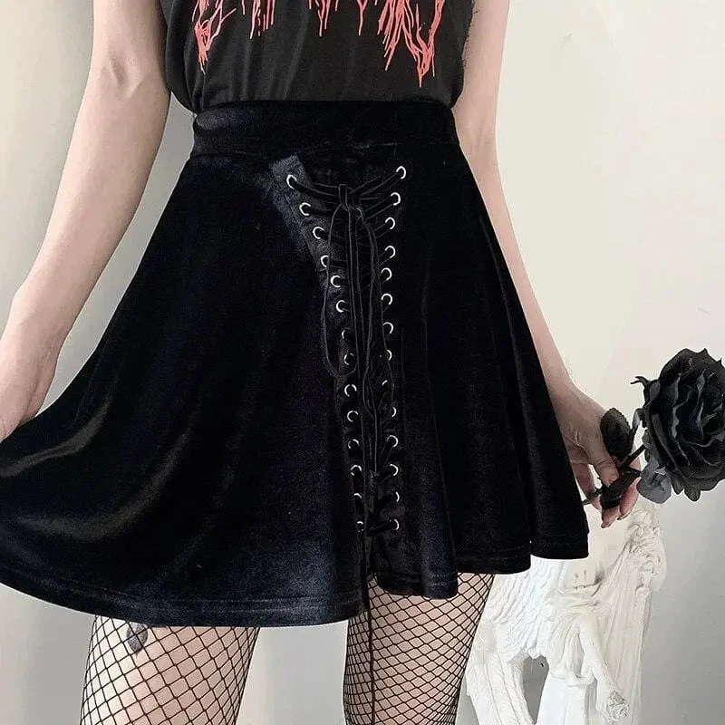 Gothic Black Velvet Lace Up Front A-Line Mini Skirt EG0062
