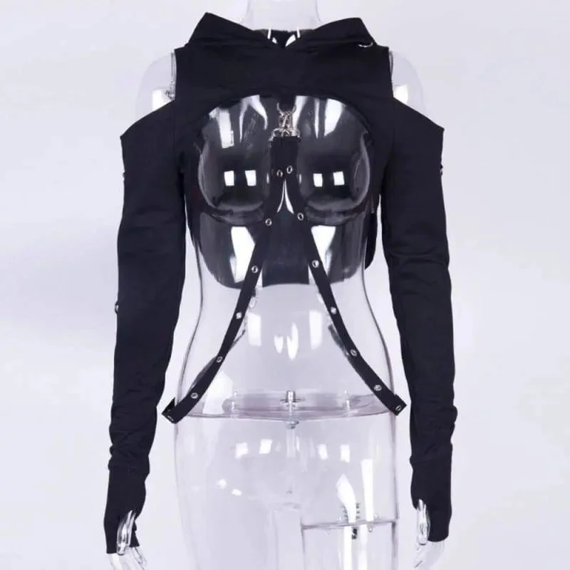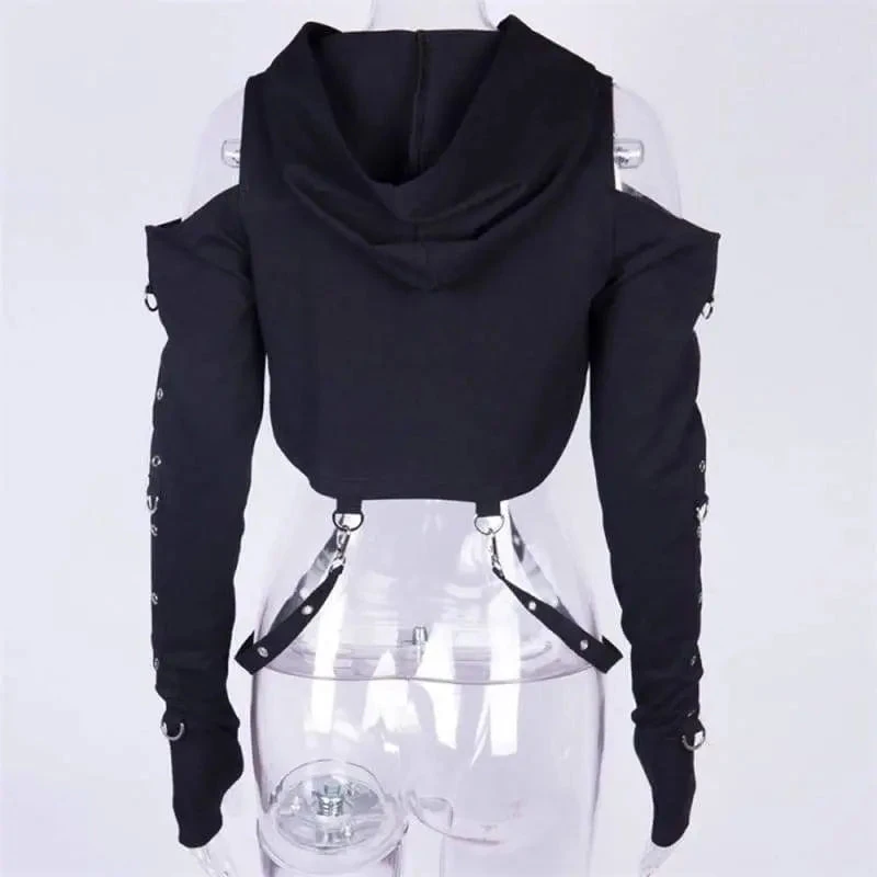 Gothic Cold Shoulder Eyelet Straps Hoodie Bolero EG478