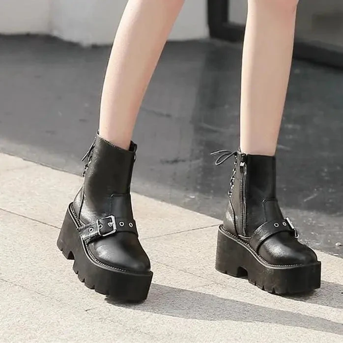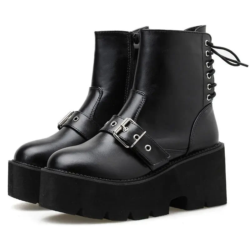 Be the first to review “Gothic Grunge Buckle Front Lace Up Back Platform Boots EG0244” Cancel reply