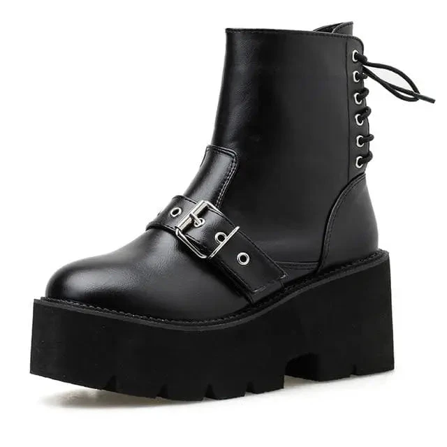 Gothic Grunge Buckle Front Lace Up Back Platform Boots EG0244