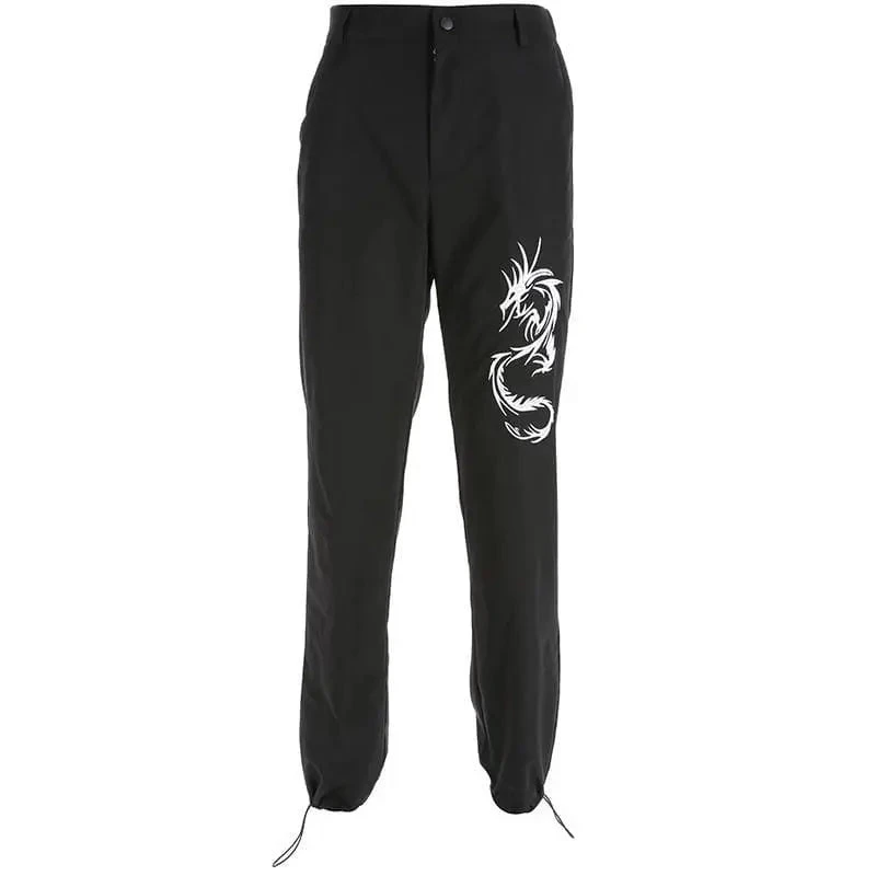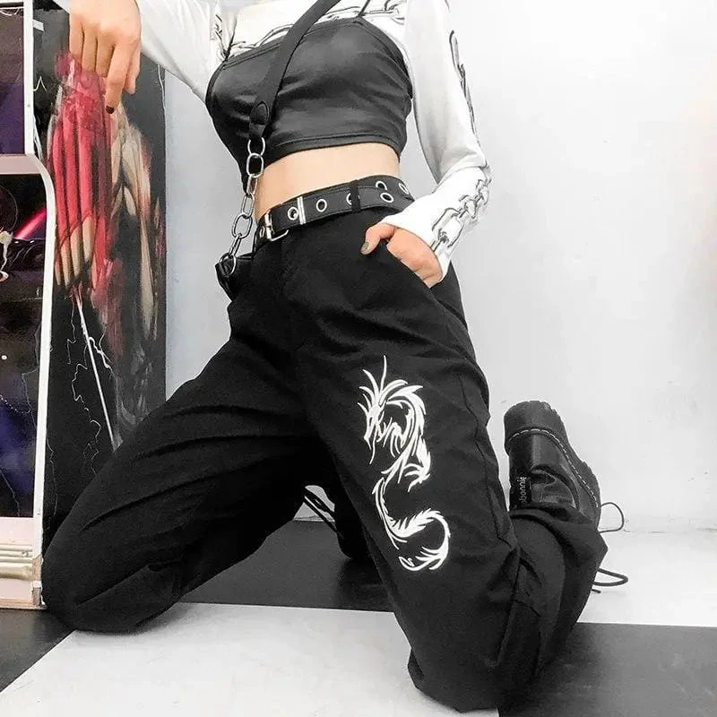 Gothic Grunge Dragon Embroidery Jogger Pants EG293