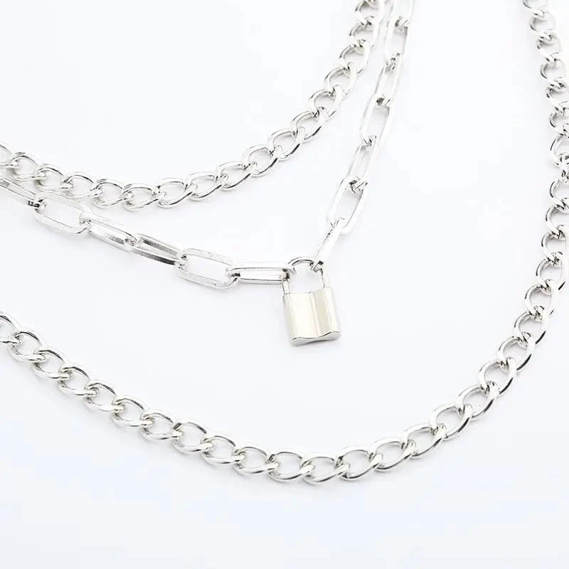 Gothic Grunge Layered Chain Padlock Necklace EG220