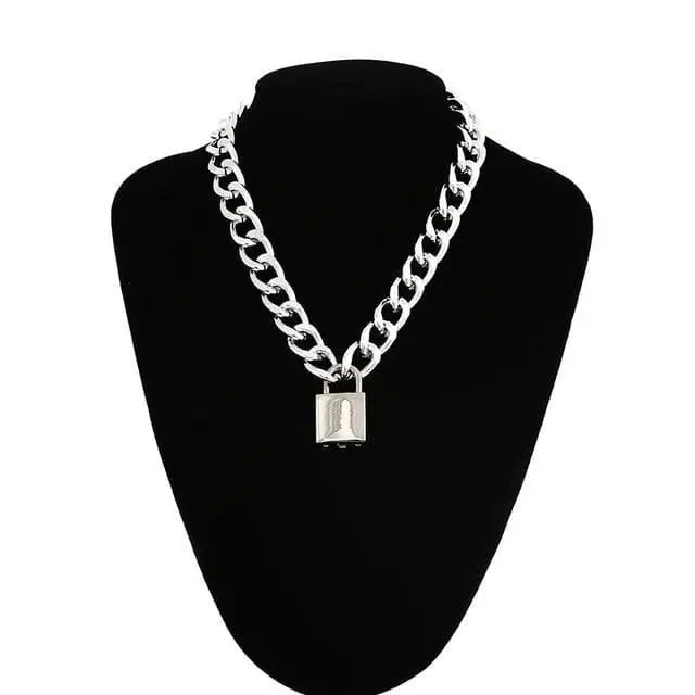 Gothic Grunge Padlock Thick Chain Necklace EG014