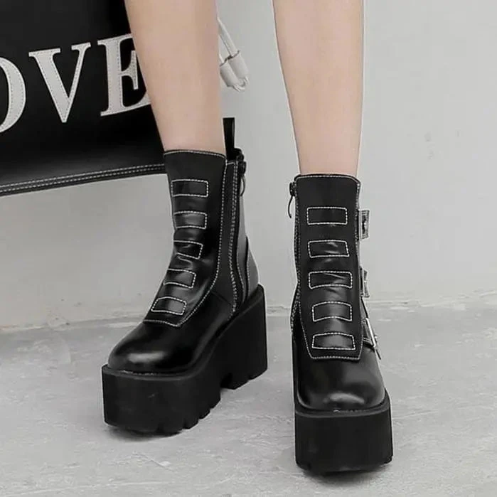 Be the first to review “Gothic Grunge White Stitching Platform Boots EG0376” Cancel reply