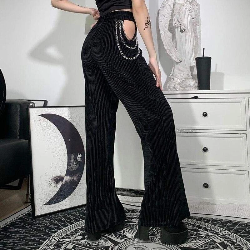 Bad Dream Cut Out Pants featuring a stretchy ribbed construction, side cut outs and chains and wide fit.