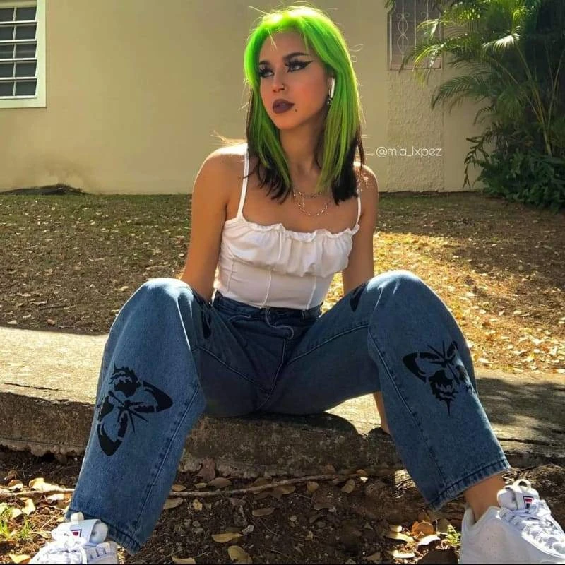 Butterfly Boyfriend Jeans cuz your love is beautiful like a butterfly’s wings! Flutter away into a daydream with these denim jeans that have a high-rise fit, pockets on the front N’ back, and a supa cute butterfly print all ova.