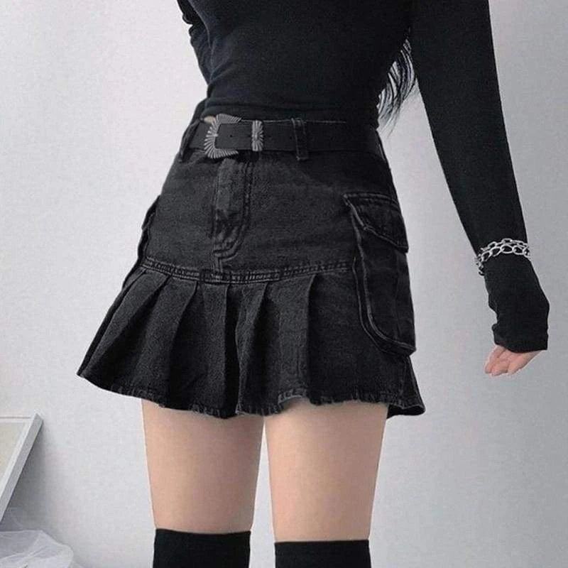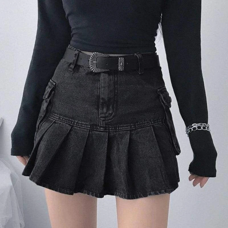 Gothic Harajuku Daring Denim Pleated SkirtÂ