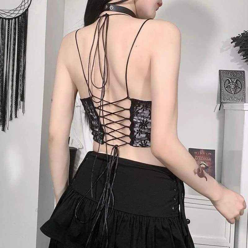 Desire You Tank Top you’re the only one we want babe! This layered tank top has sheer lace construction with white satin layer underneath, v-cut hem and a sexy back lace up closure.