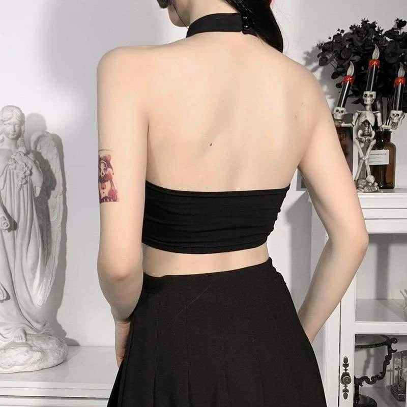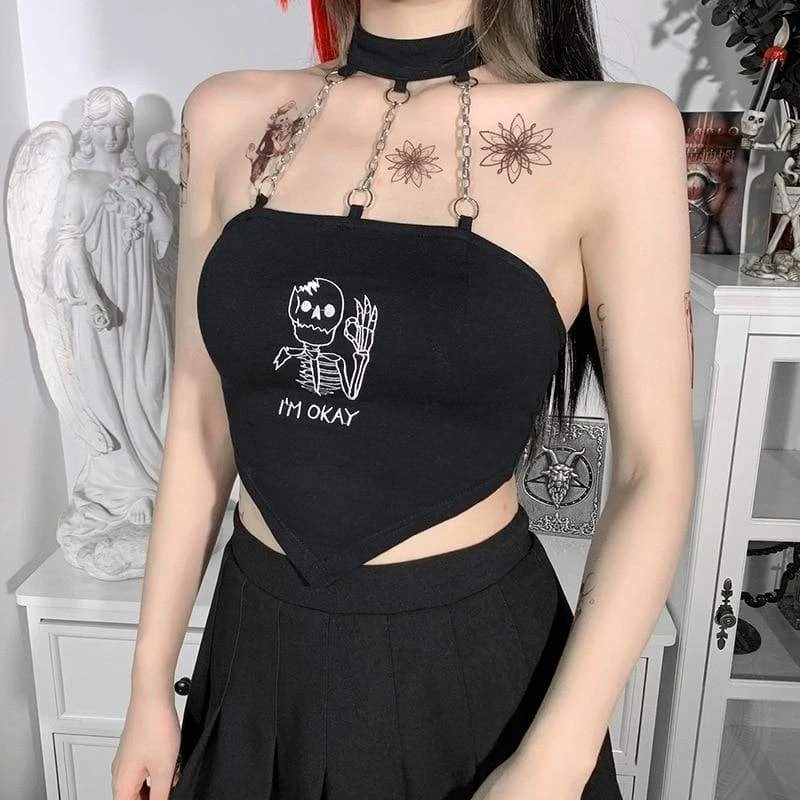 I’m Ok Choker Top cuz . This top has a front chain hardware, a v hemline, a front graphic and a choker neckline.