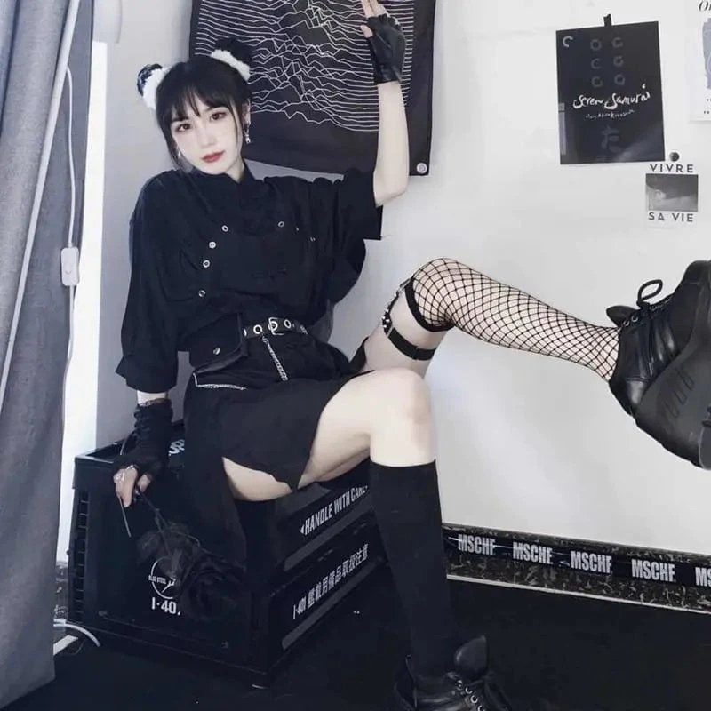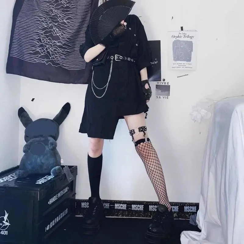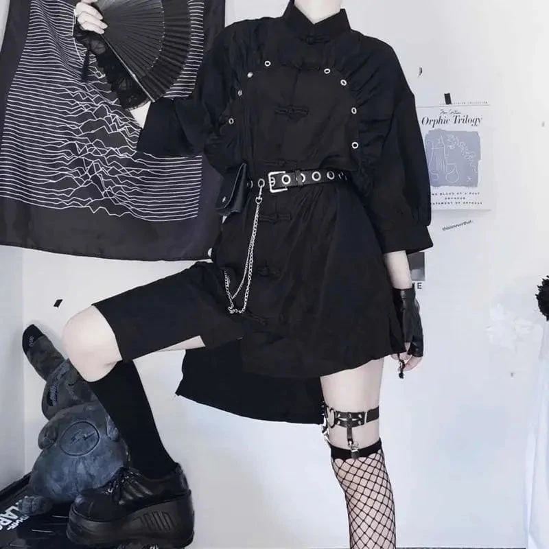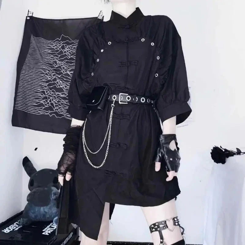 Gothic Harajuku Punk Cheongsam Style Irregular Belted Dress EG0423
