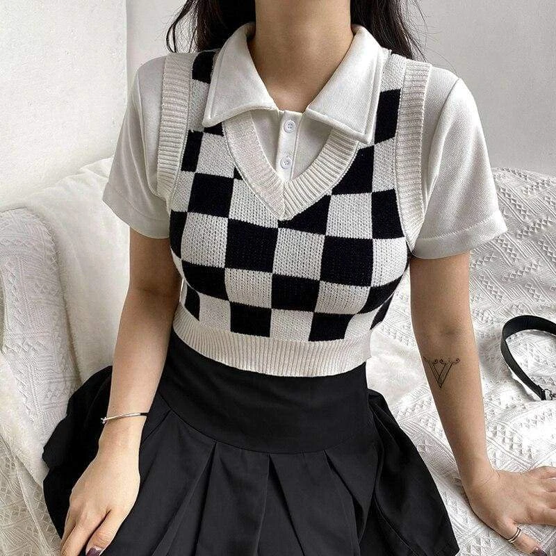 See You Checkin Vest Sweater cuz they taking a second look. This sweater vest features a checkered print all over, and ribbed knit trim at the v-neckline and hem.