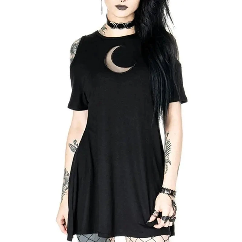 Gothic Hollow Out Moon Cold Shoulder Short Dress EG224