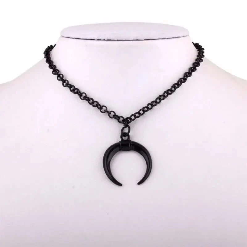 Gothic Inverted Crescent Moon Black Necklace EG117