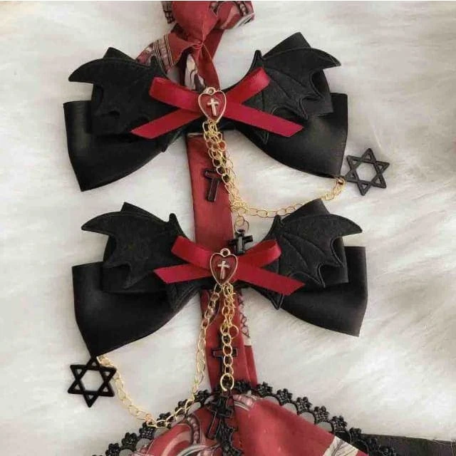 Gothic Punk Hexagram Cross Bowknot Lolita Hair Clip BE199