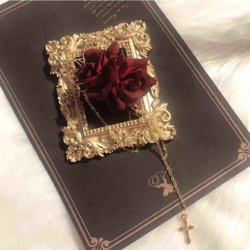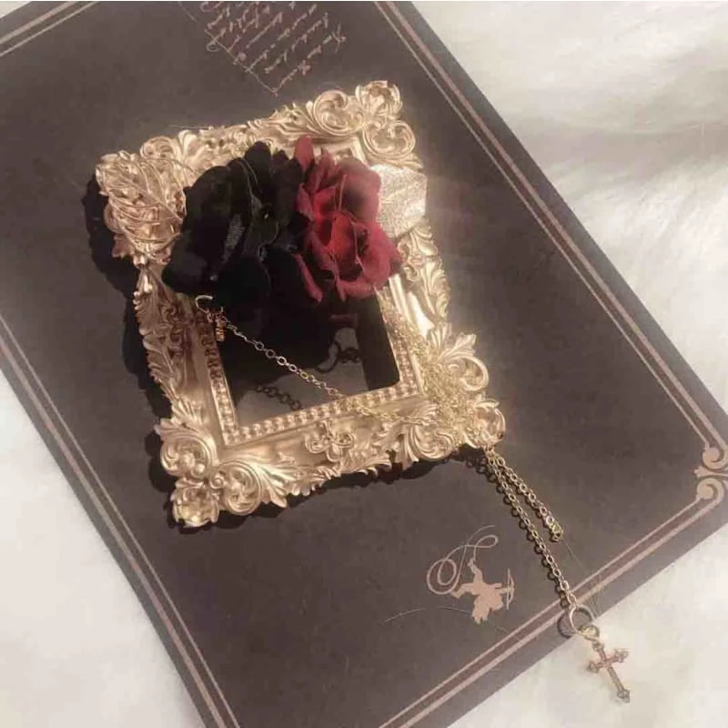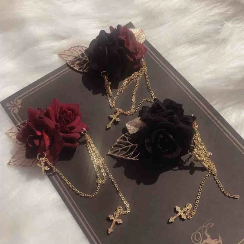 Gothic Punk Lolita Rose Tassels Cross Hairpin Brooch  BE200