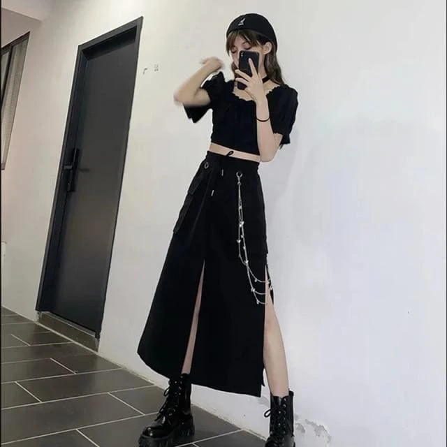- 1 x Harajuku Slim Retro Top + Mid-length Skirt