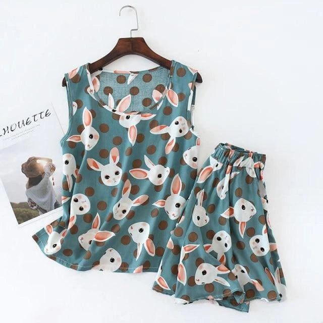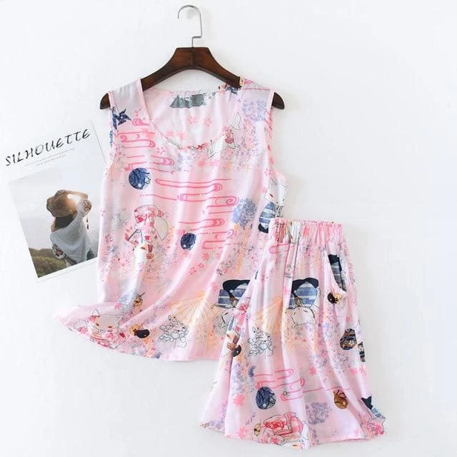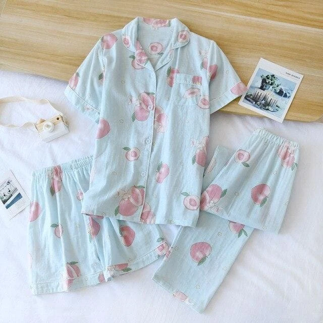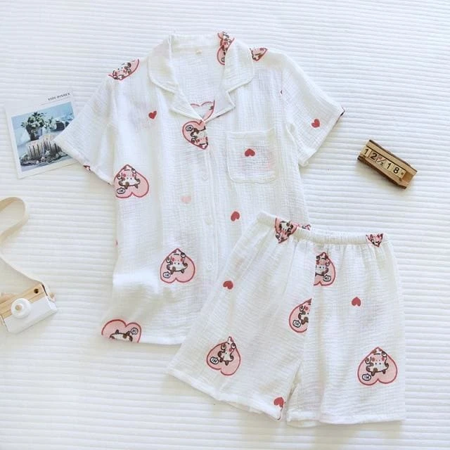Japanese Fashion Pajama Cartoon Print Double Gauze Set BE013