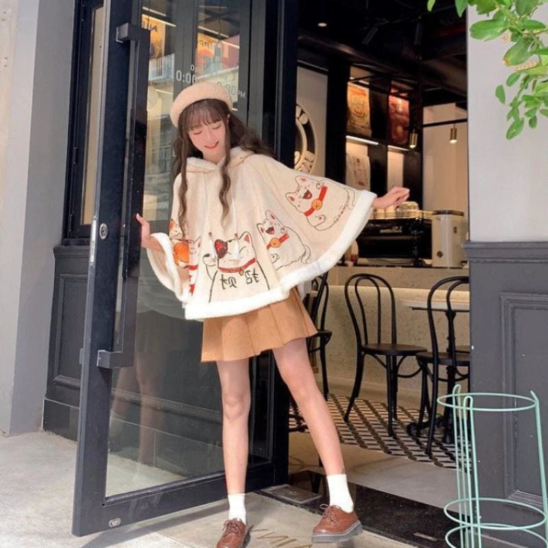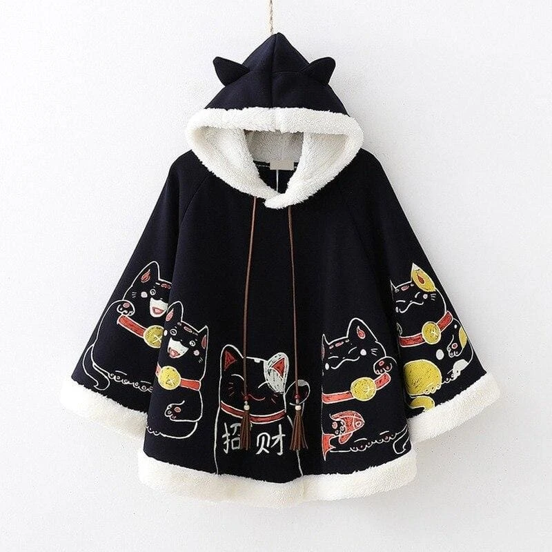 Japanese Harajuku Kawaii Lucky Cat Cloak Cute Hoodies Cape SS2158