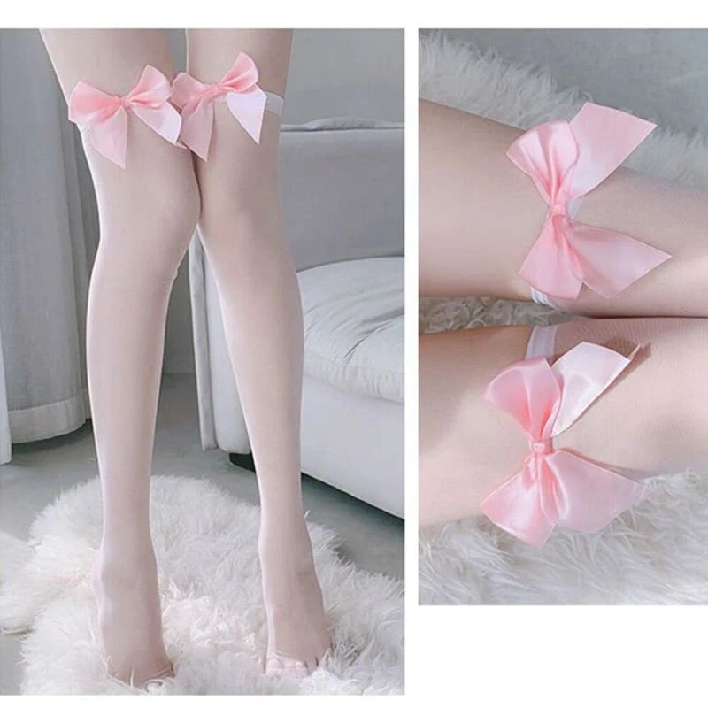 Japanese Kawaii Bow Thigh High Socks Transparent Silk Stocking SS2157