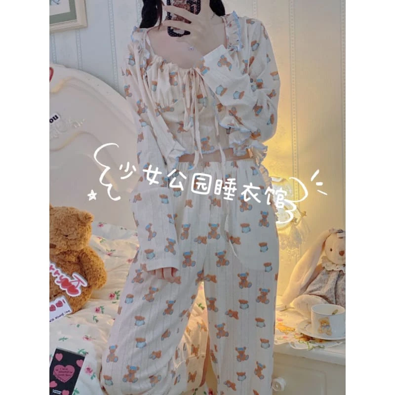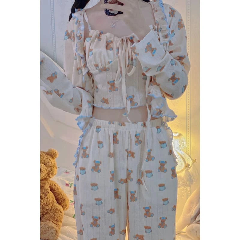 Kawaii Home Wear Three Pieces Set Bear Pajamas ON04