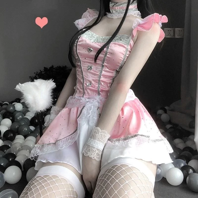 Hair band + neck ring + top + skirt + sleeves + thongs + net stockings + feather rod