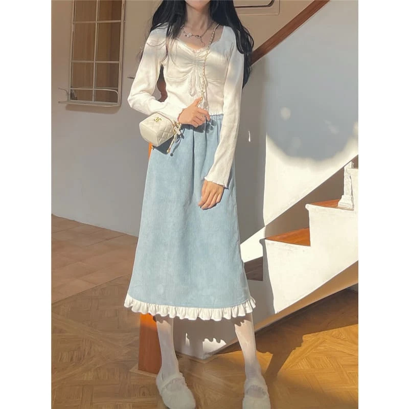 Kawaii White Lace Long Slevee Top Sweet Pants/ Skirt BE410