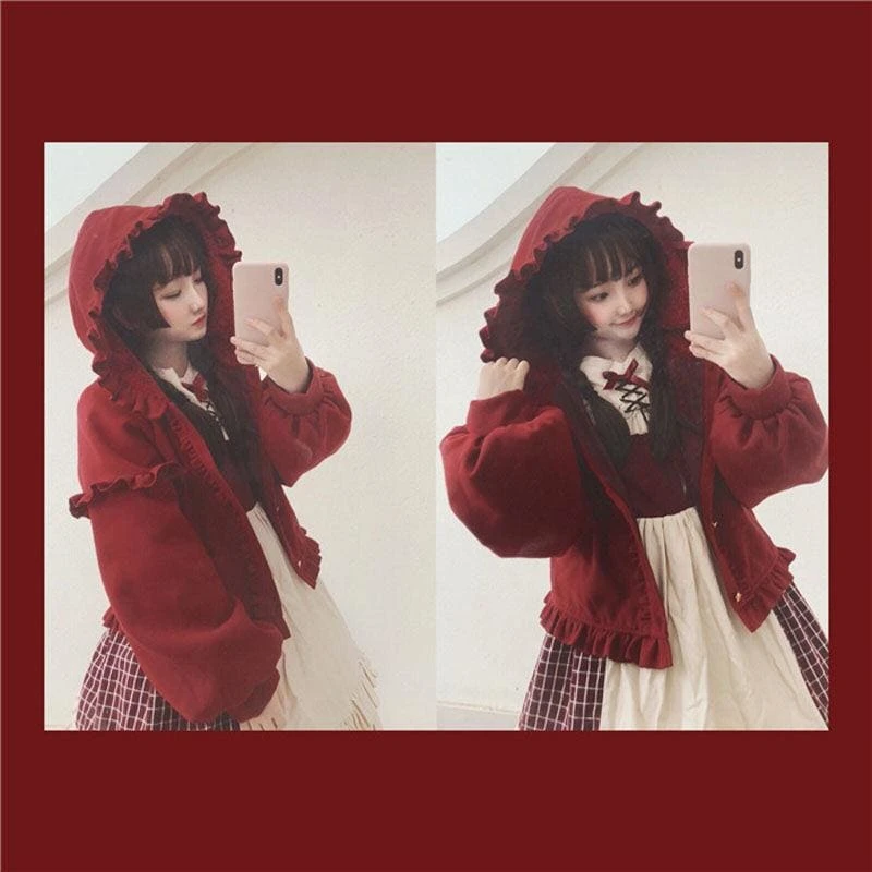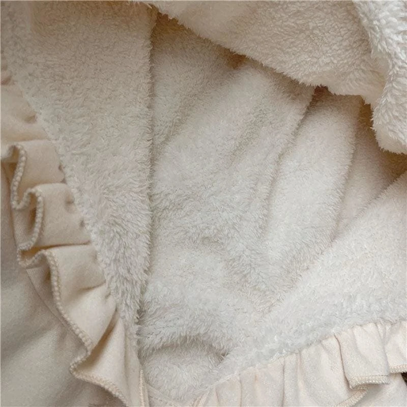 - 1 x Kawaii Winter Lolita Tweed Cape Plush Jacket