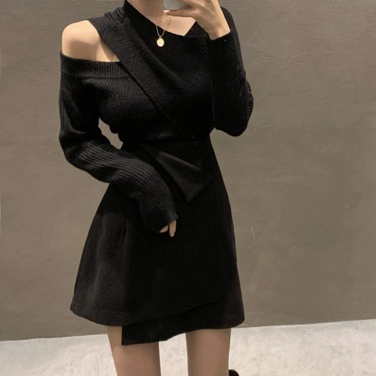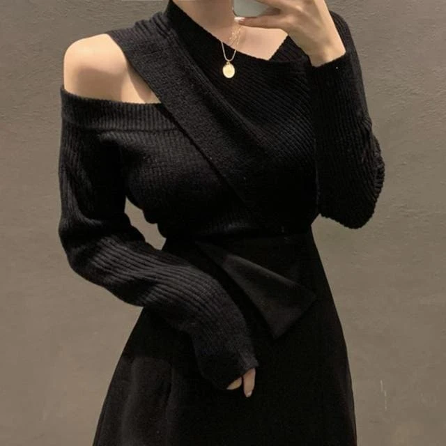 Knitted Sweater Cutout Off Shoulder Cross Tops BE156