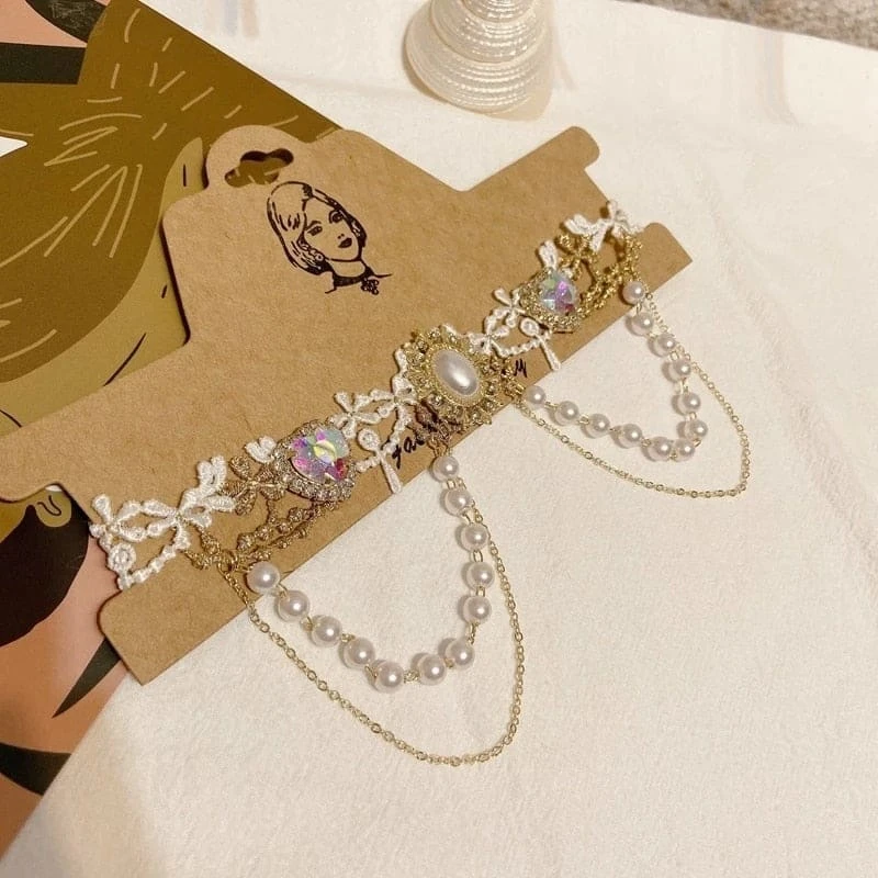 Korean Elegant Lace Flower Heart Crystal Necklace BE305