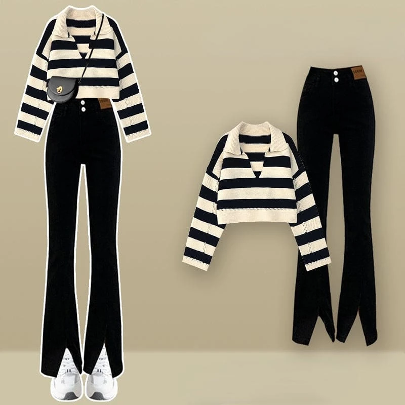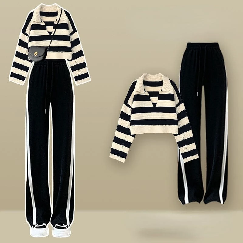 Korean Fashion Stripes Sweater Casual Pants Two Pieces Set ON250