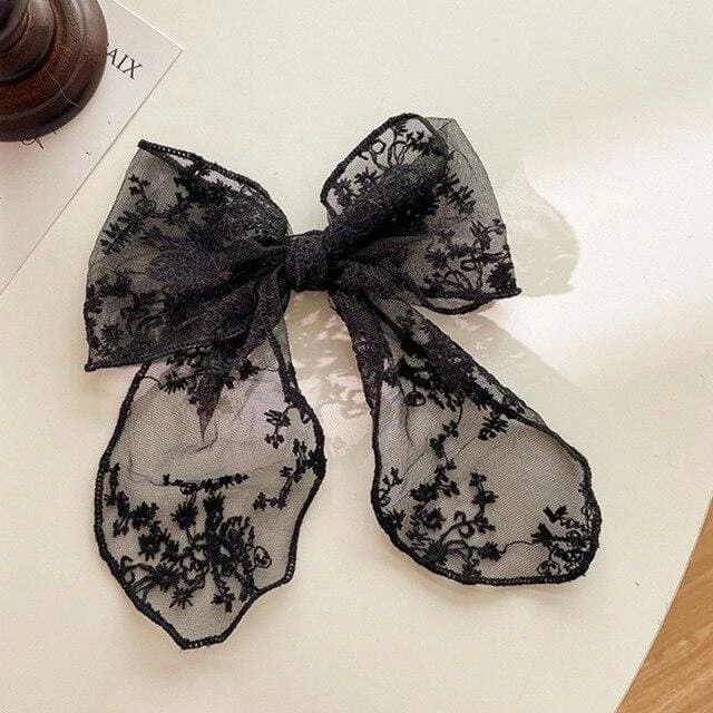 Korean Kawaii Black White Lace Bow Charm Hairpin BE282