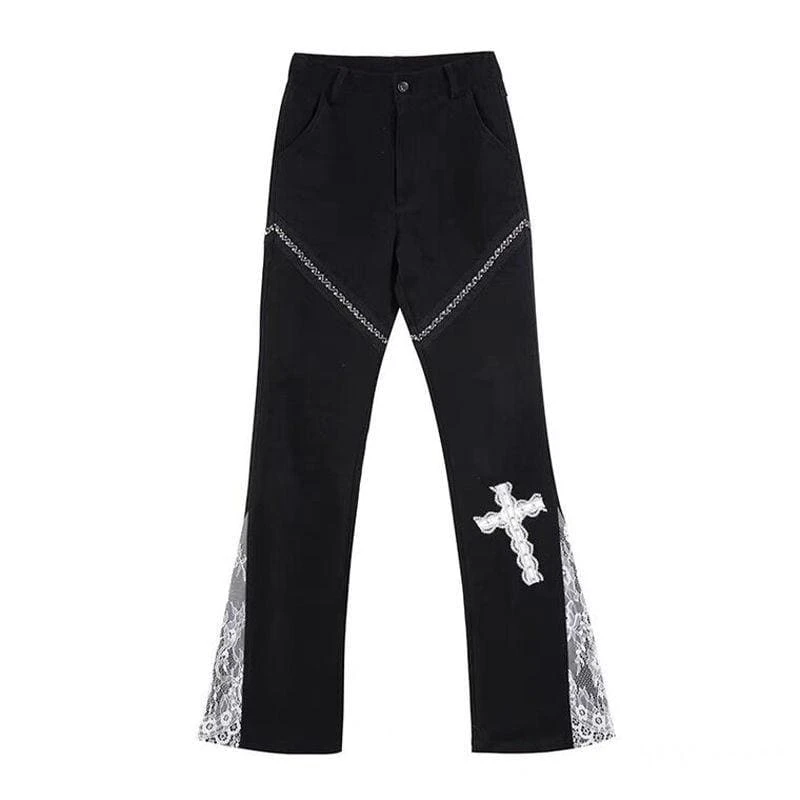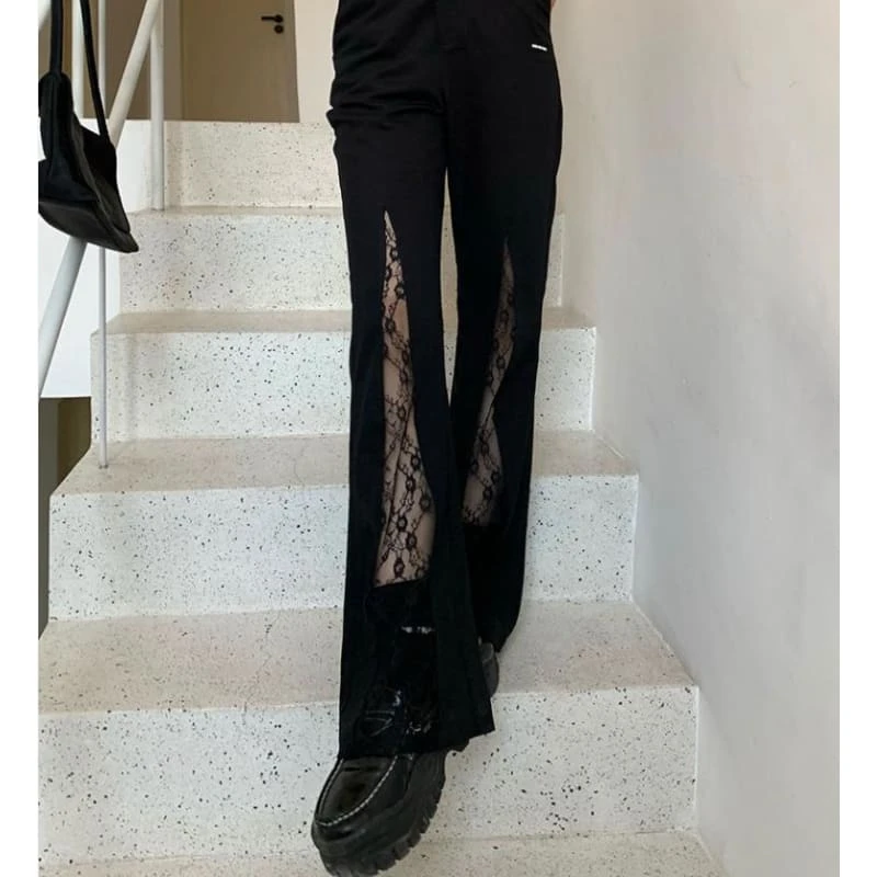 Lace Cross Stretch Thin Flared Wide-leg Pants