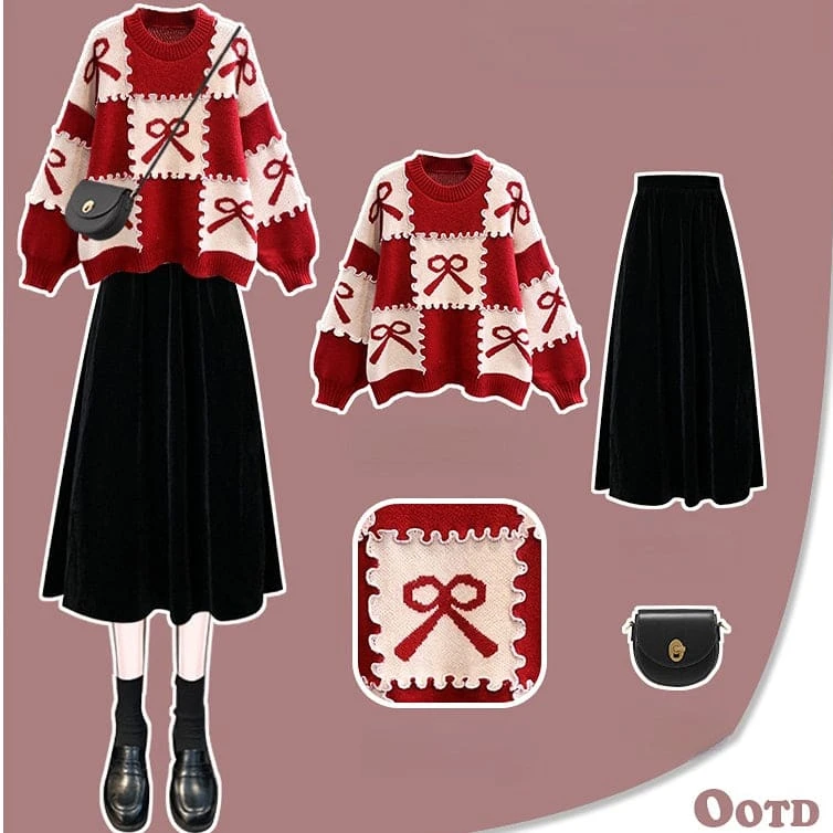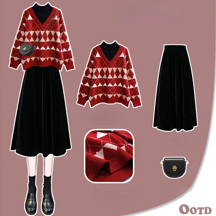 Lory Fake Two Pieces Winter Plaid Sweater And Skirt Set ON296